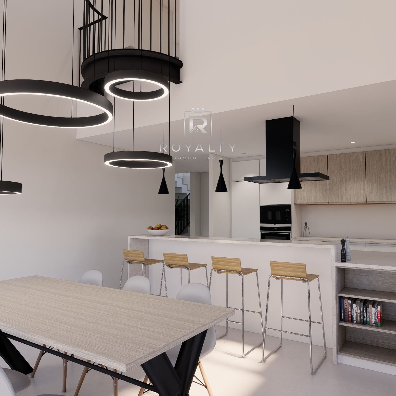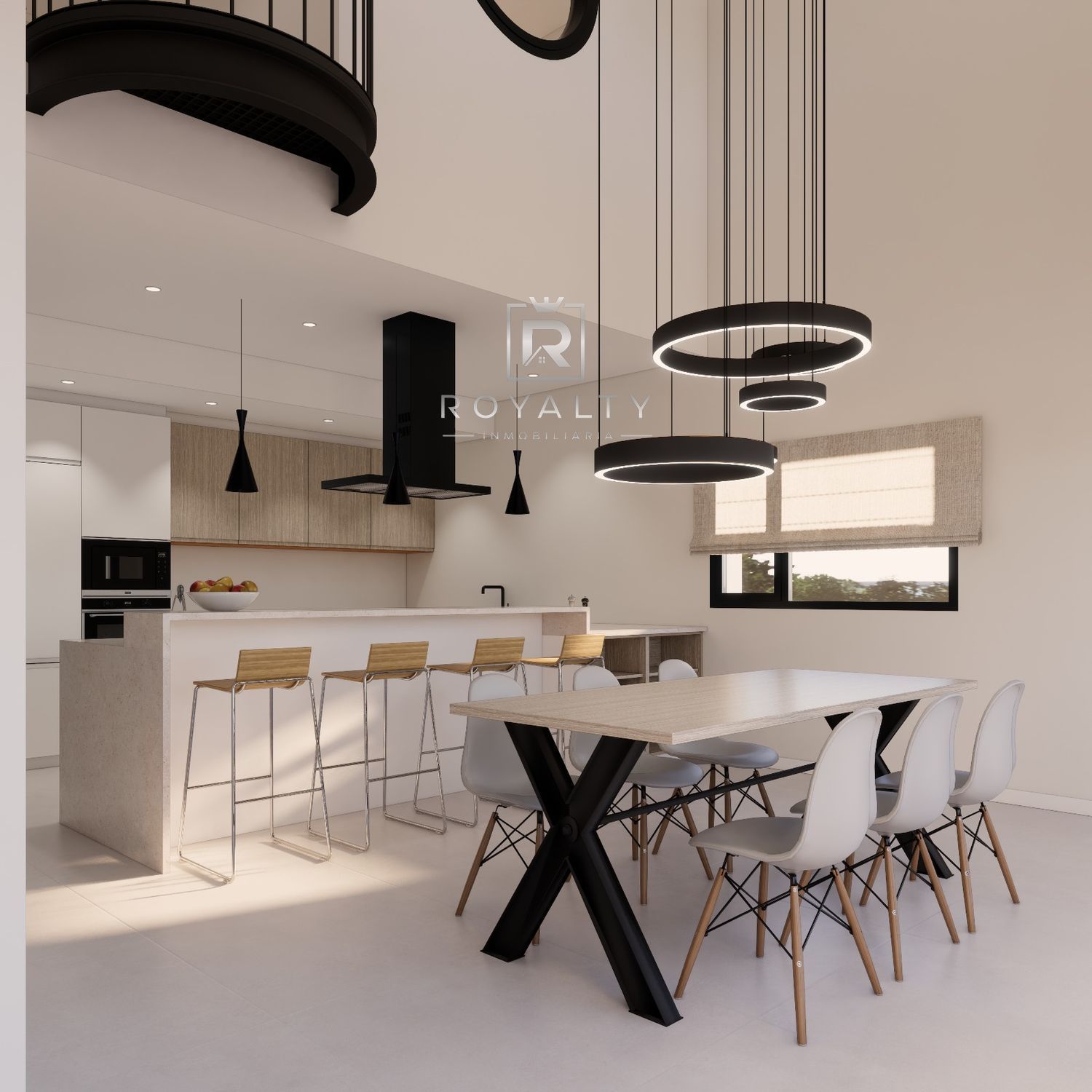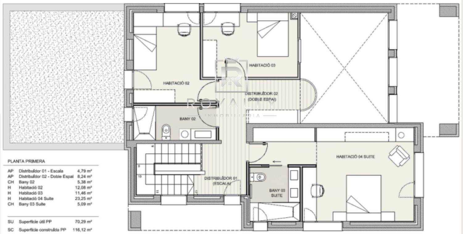 Un espacio a doble altura aporta carácter y amplitud visual. La suite principal dispone de baño privado y vestidor, acompañada de dos amplias habitaciones dobles, un baño completo y acceso a una gran terraza, ideal para disfrutar del aire libre y las vistas.