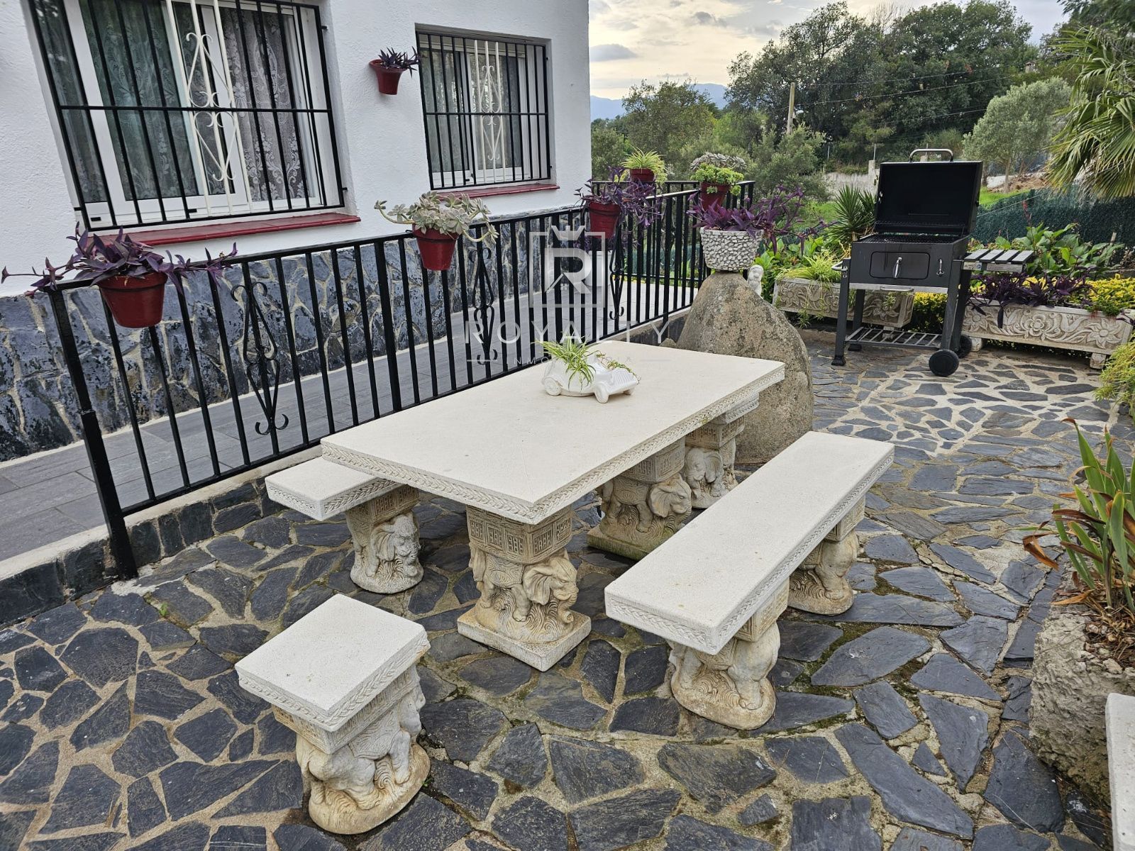 El jardín es un verdadero oasis, con mucho verde, flores bien cuidadas y un sistema de riego que mantiene todo en perfecto estado durante todo el año. La propiedad cuenta con una larga y bonita entrada rodeada de vegetación que aporta privacidad y un encanto especial. En el exterior también destaca la refrescante piscina privada, perfecta para el ocio y la relajación.