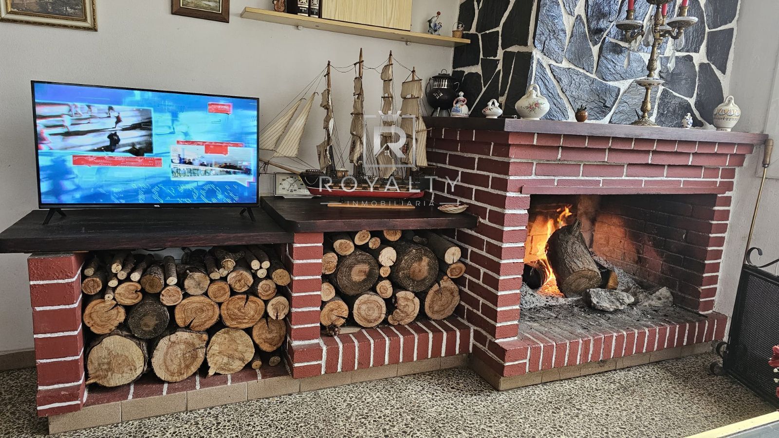 El hogar dispone de un luminoso comedor con chimenea, perfecto para crear ambientes cálidos y acogedores. La cocina, práctica y funcional, se abre a terrazas que invitan a disfrutar de las vistas y el entorno natural. Además, incluye un sótano en la planta baja que aporta espacio adicional y un almacén anexo externo.