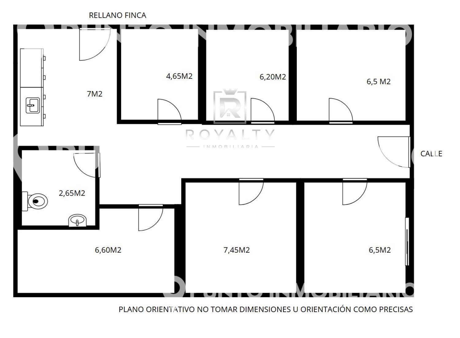 El local se encuentra en excelente estado, con suelos resistentes de gres, paredes lisas y una distribución en seis estancias que oscilan entre 4,65 m² y 7,45 m², además de un baño con WC y grifo.